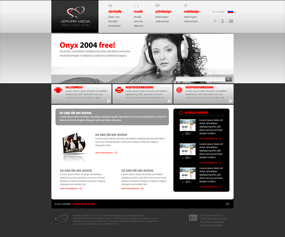 Das ist meine eigene Musikstudio-Webseite, die ich regelmäßig aktualisiere und pflege. Diese Webseite habe ich seit dem Jahr 2000 mehrfach komplett neu gestaltet und sie wurde unter verschiedenen CMS-Systemen immer wieder aufgebaut und überarbeitet. Die ersten Versionen meiner Seite bis zum Jahr 2010 waren selbstgeschriebene HTML-Seiten, auf denen ich viel mit HTML, CSS und JavaScript gearbeitet habe. Das war mein größtes Praktikum in der Welt des Webdesigns. Die Seite hatte so viele verschiedene Gesichter und Stile, dass ich sie nicht einmal zählen kann. Doch genau dieser Wunsch nach ständiger Verbesserung und das Streben nach Neuem haben mir die besten und notwendigen Erfahrungen vermittelt, um weiterhin professionelle und moderne Seiten für andere zu gestalten.