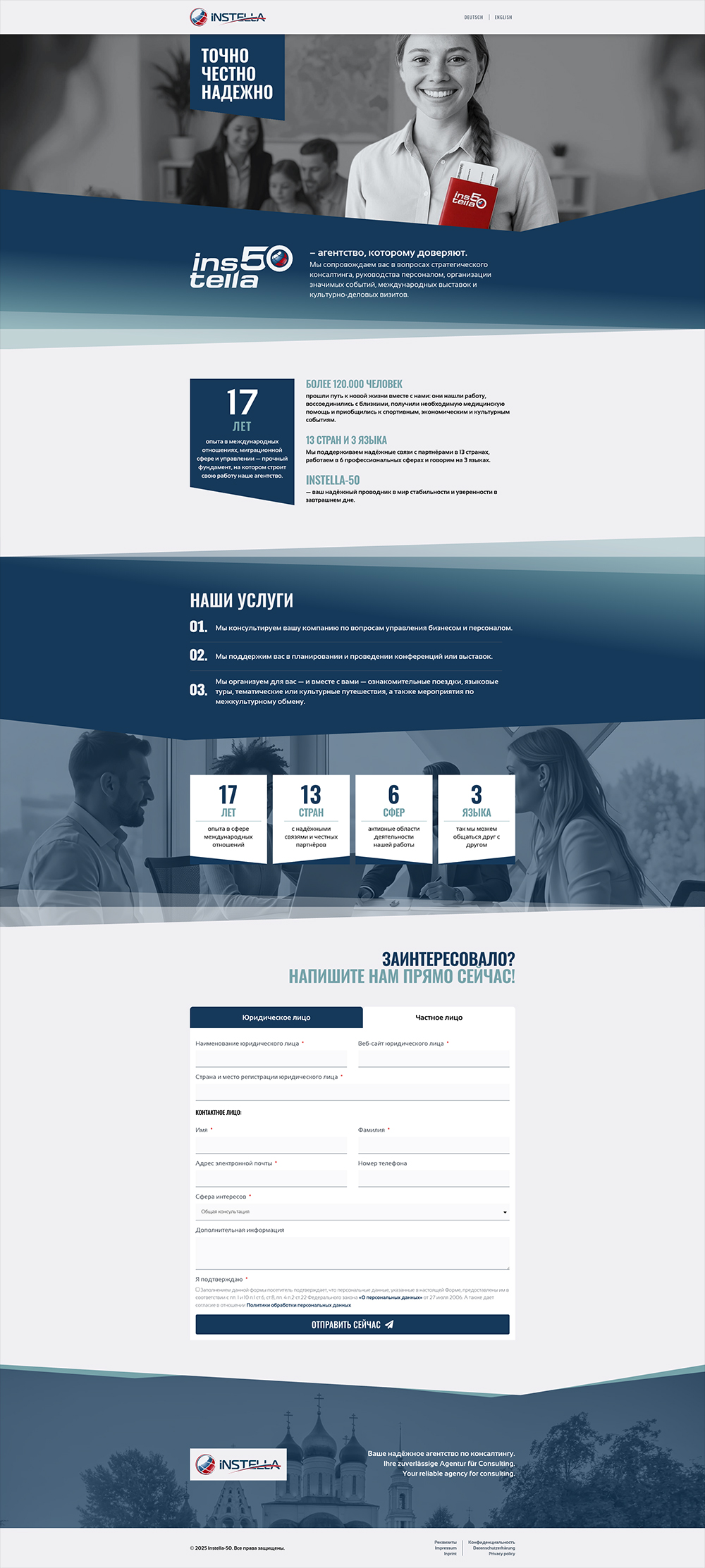 Für eine im Ausland ansässige Consulting-Agentur habe ich die komplette Website konzipiert, gestaltet und umgesetzt – auf Basis von WordPress CMS und in drei Sprachversionen.